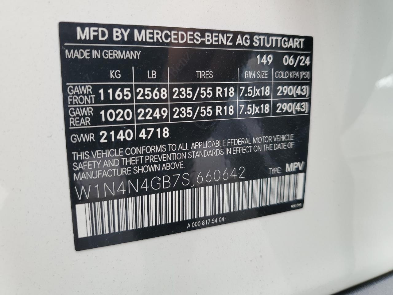 - ВИН: W1N4N4GB7SJ******