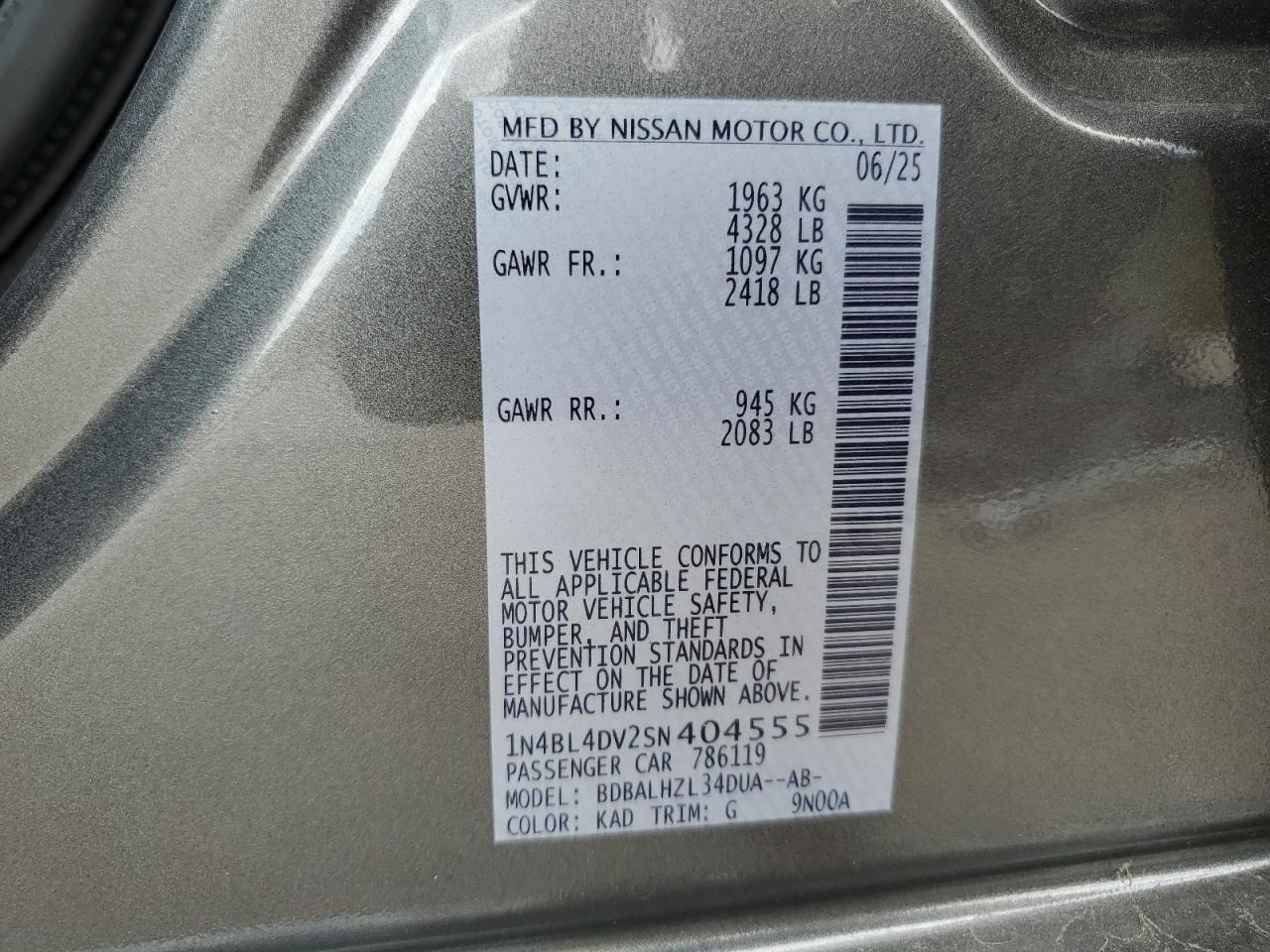 - ВИН: 1N4BL4DV2SN******