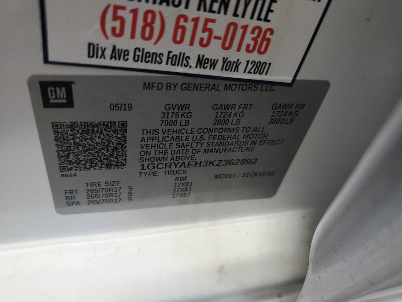 - ВИН: 1GCRYAEH3KZ******