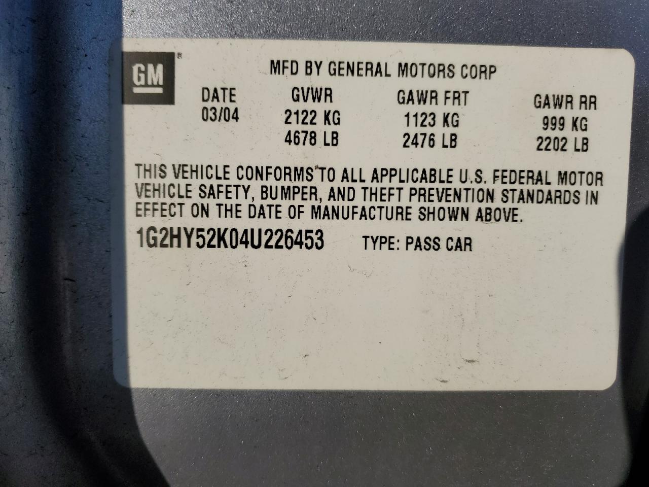 - ВИН: 1G2HY52K04U******
