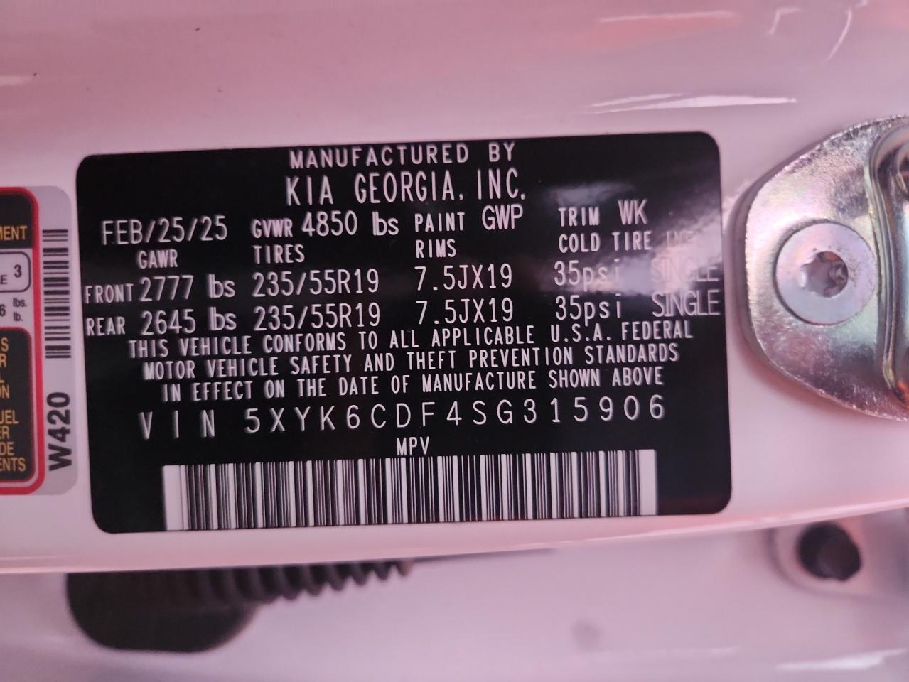 - ВИН: 5XYK6CDF4SG******