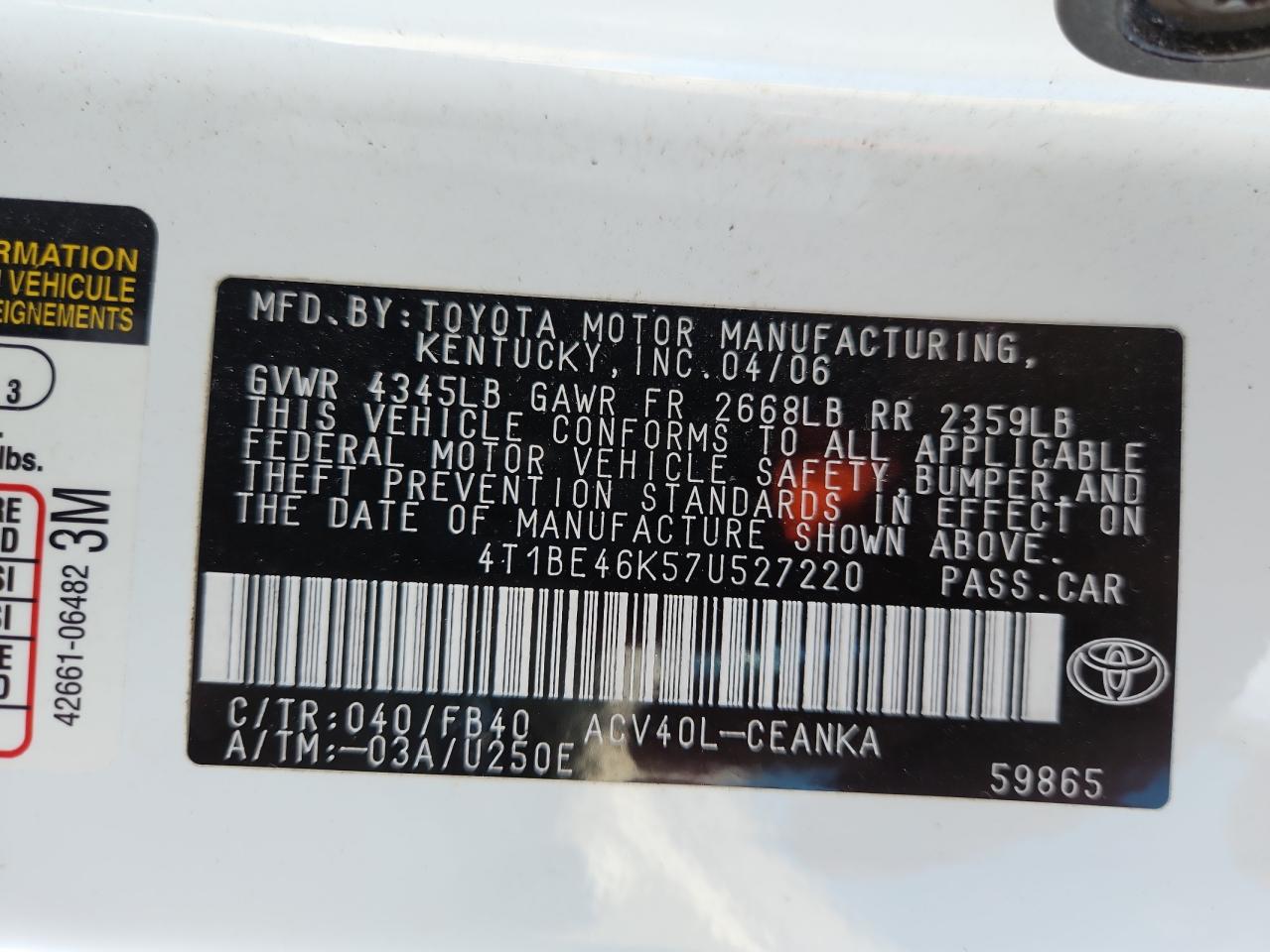 - ВИН: 4T1BE46K57U******