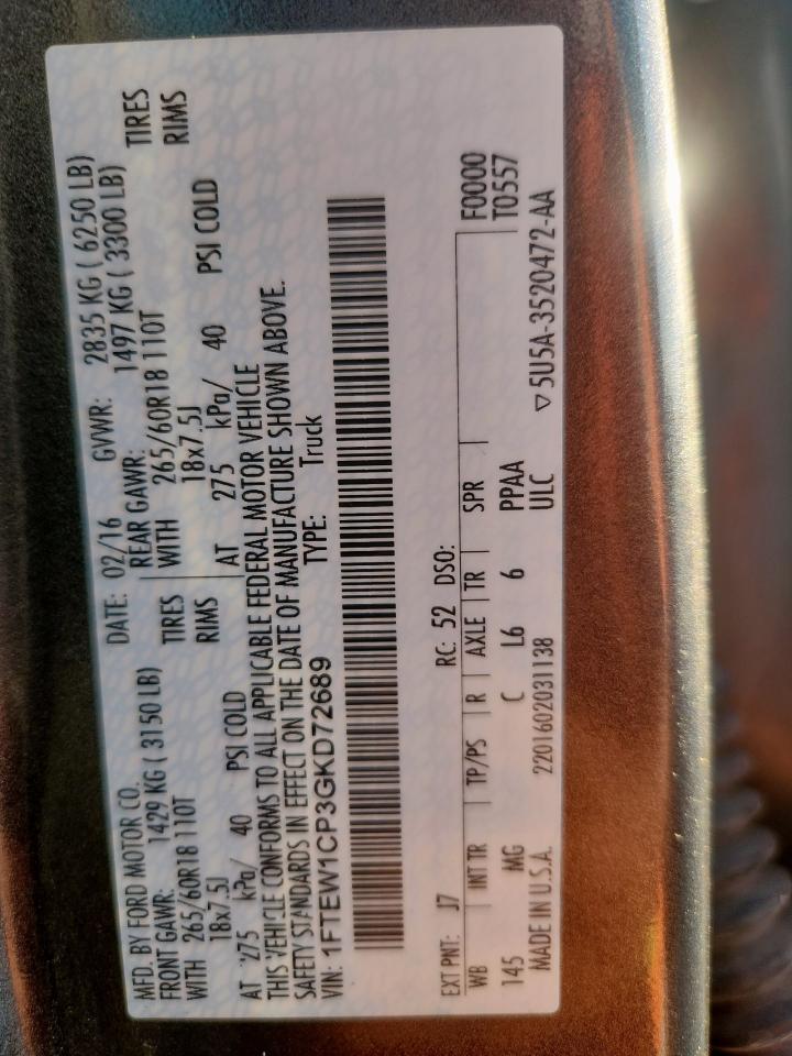 - ВИН: 1FTEW1CP3GK******