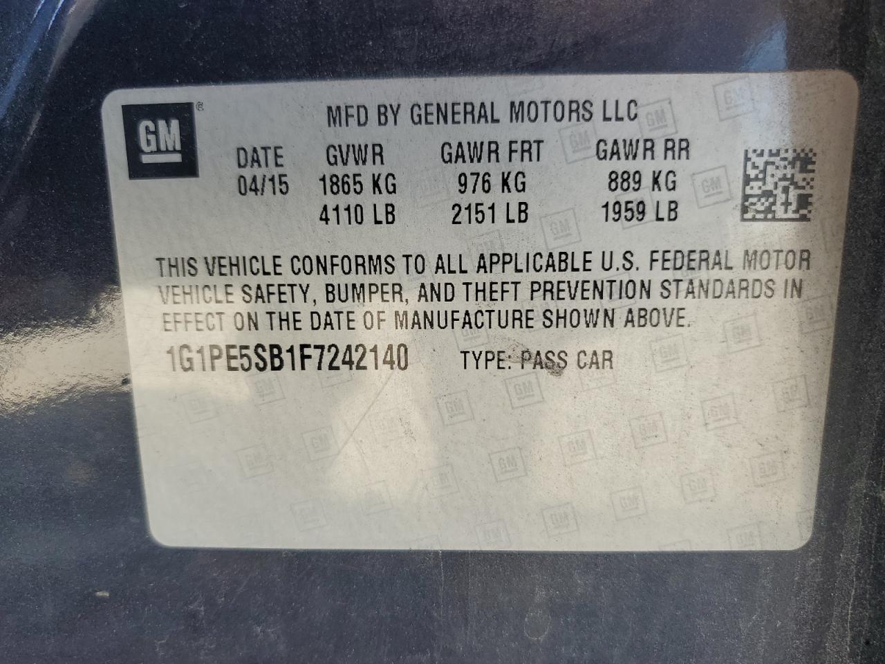 - ВИН: 1G1PE5SB1F7******