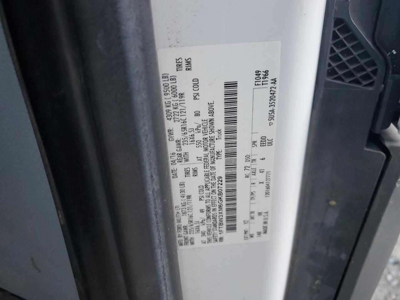 - ВИН: 1FTBW3XM6GK******