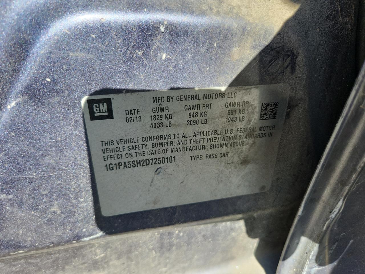 - ВИН: 1G1PA5SH2D7******