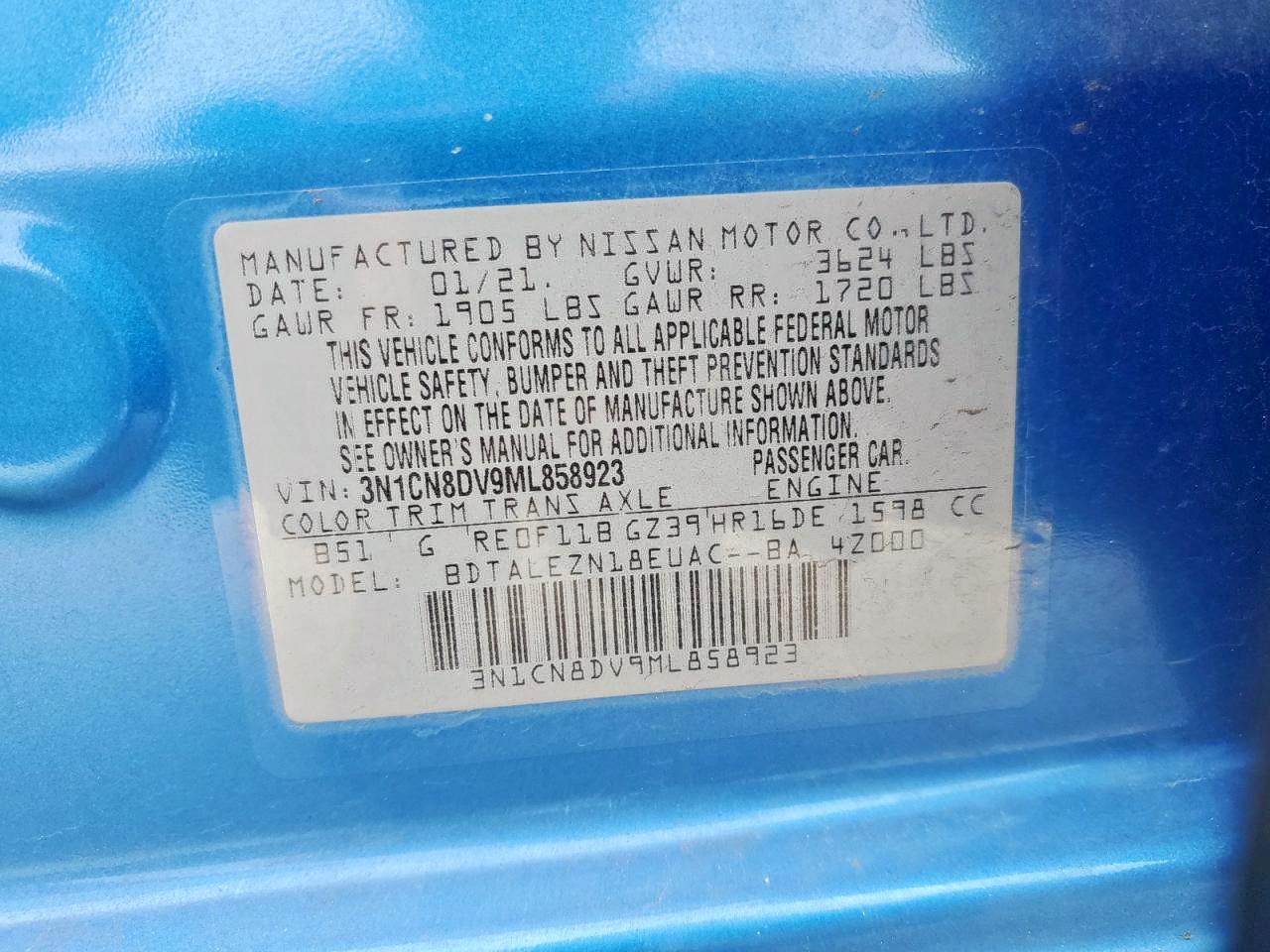 - ВИН: 3N1CN8DV9ML******