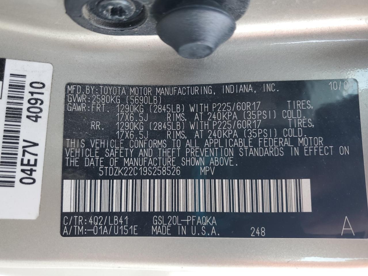 - ВИН: 5TDZK22C19S******