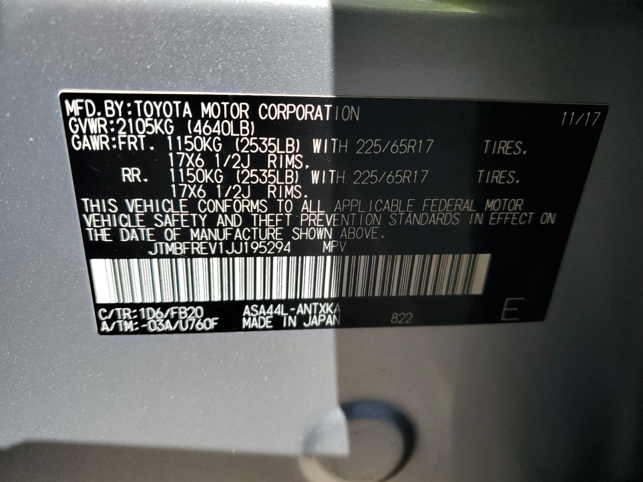 - ВИН: JTMBFREV1JJ******