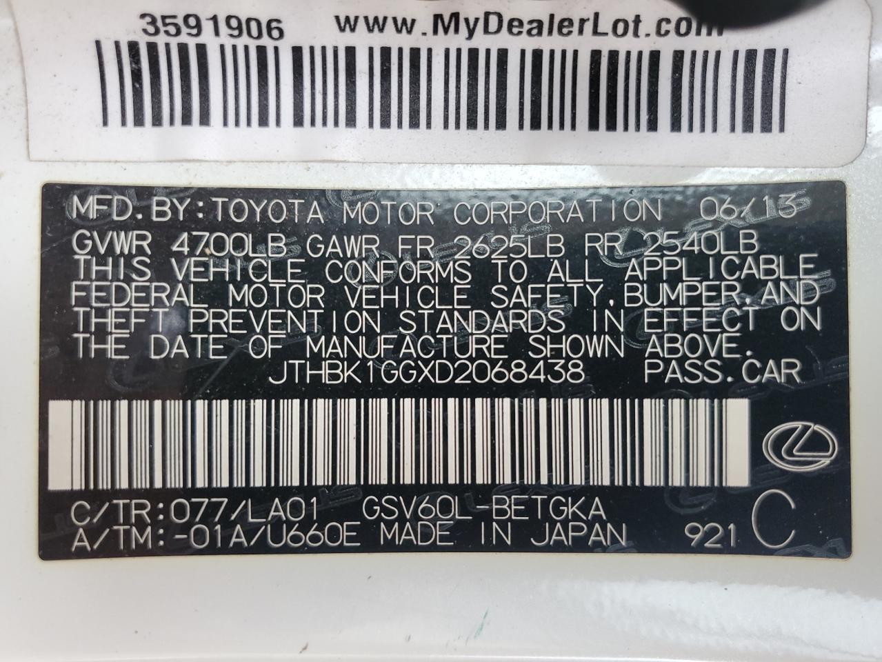 - ВИН: JTHBK1GGXD2******