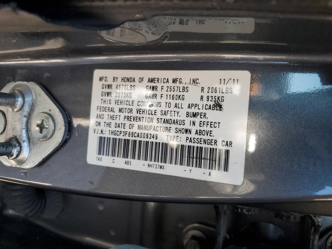 - ВИН: 1HGCP3F89CA******