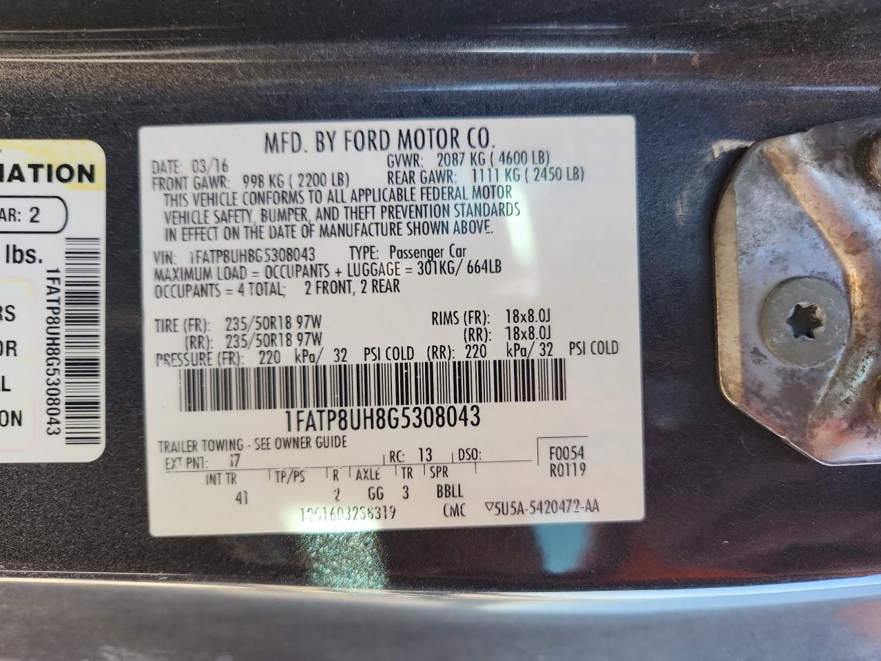 - ВИН: 1FATP8UH8G5******