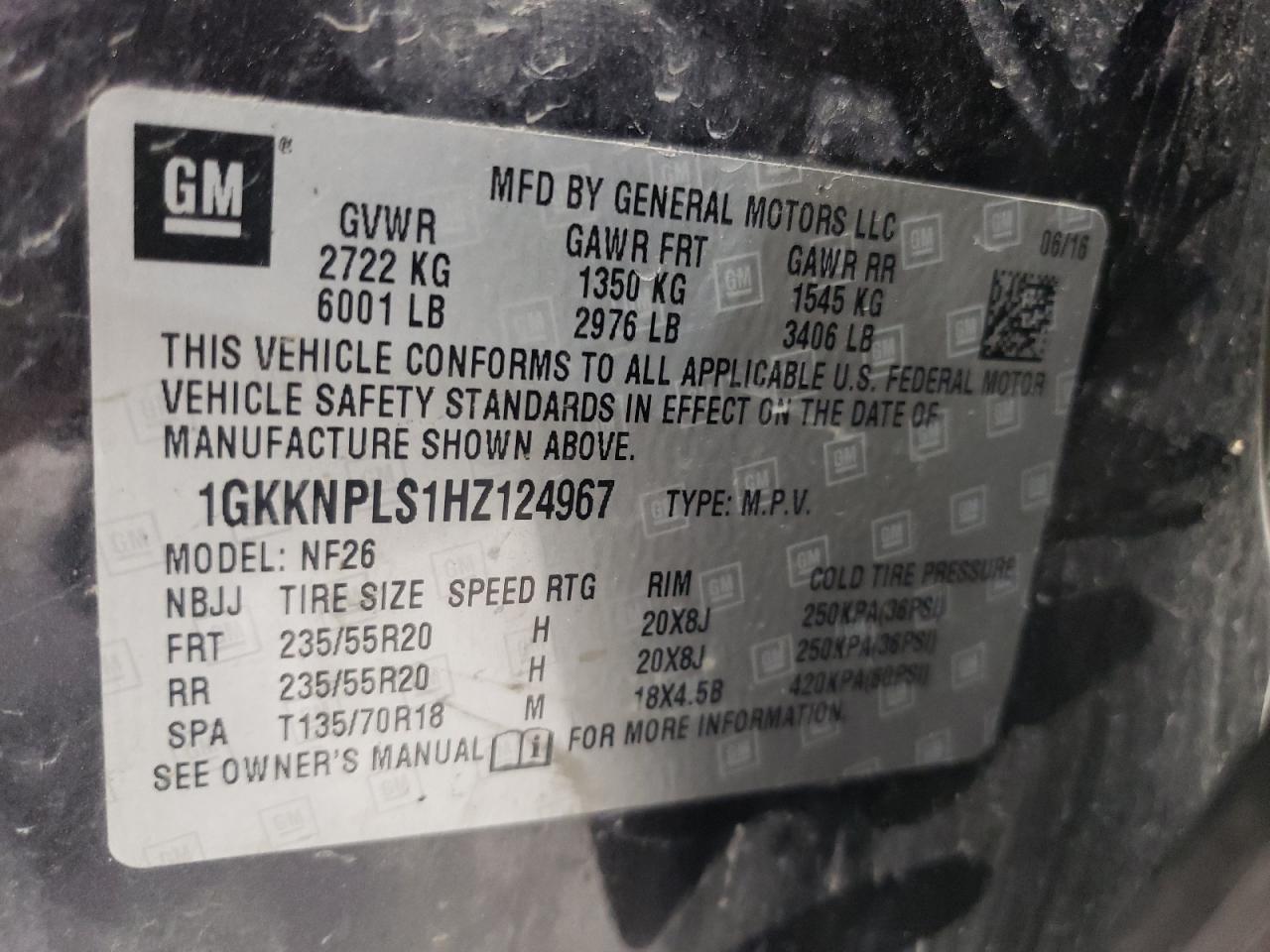 - ВИН: 1GKKNPLS1HZ******