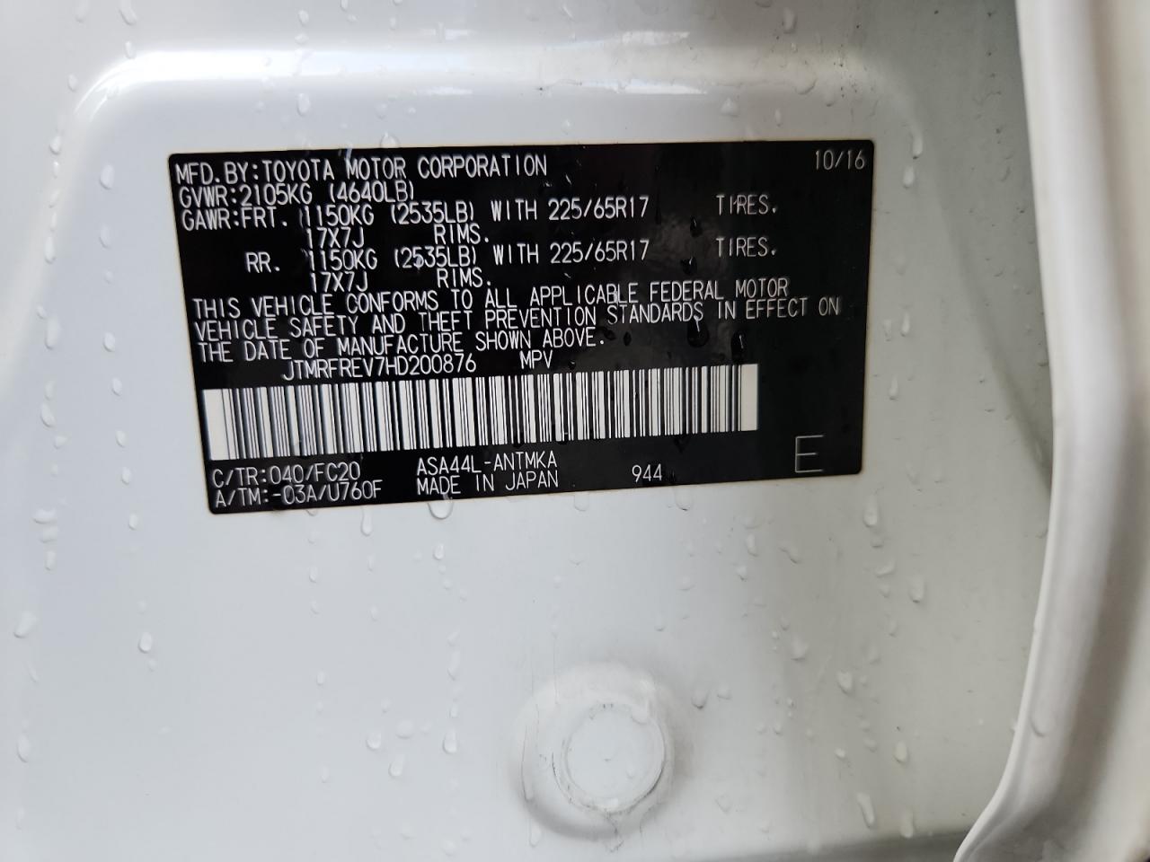 - ВИН: JTMRFREV7HD******