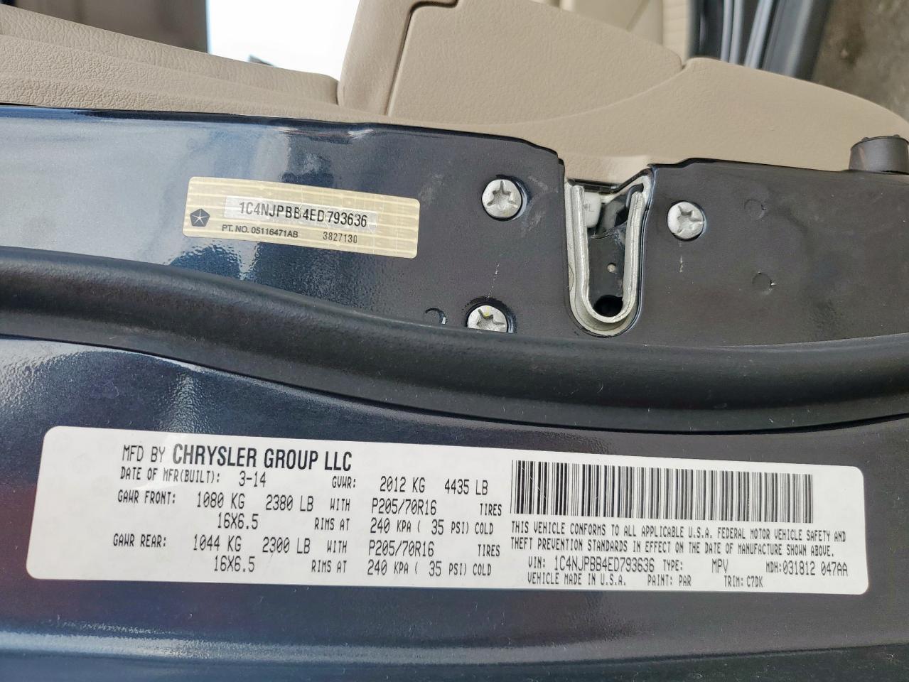 - ВИН: 1C4NJPBB4ED******