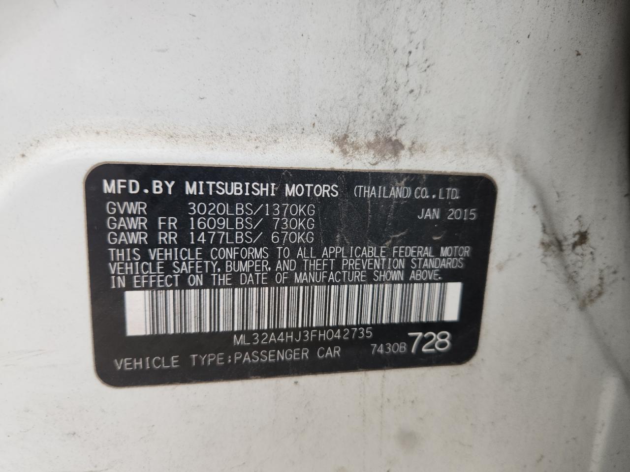 2015 MITSUBISHI MIRAGE ES из США