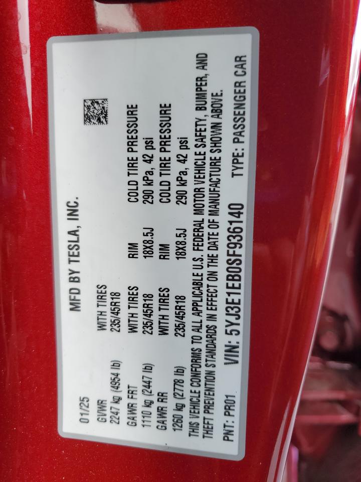 - ВИН: 5YJ3E1EB0SF******