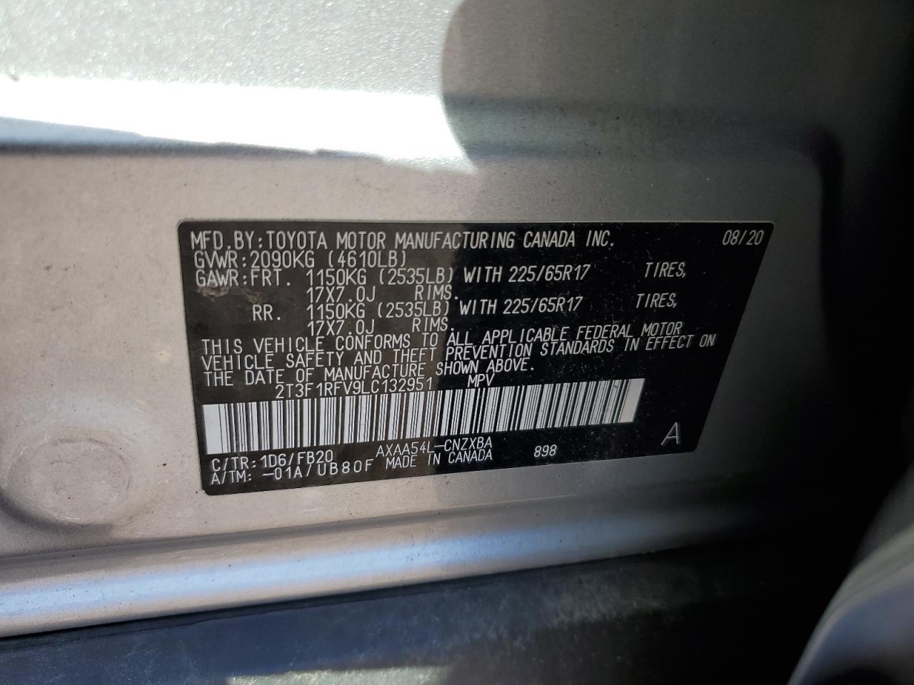 - ВИН: 2T3F1RFV9LC******