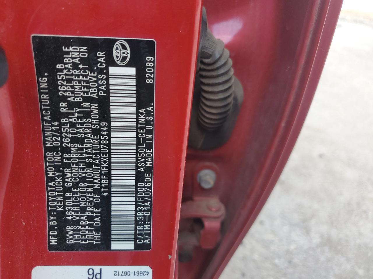 - ВИН: 4T1BF1FKXEU******