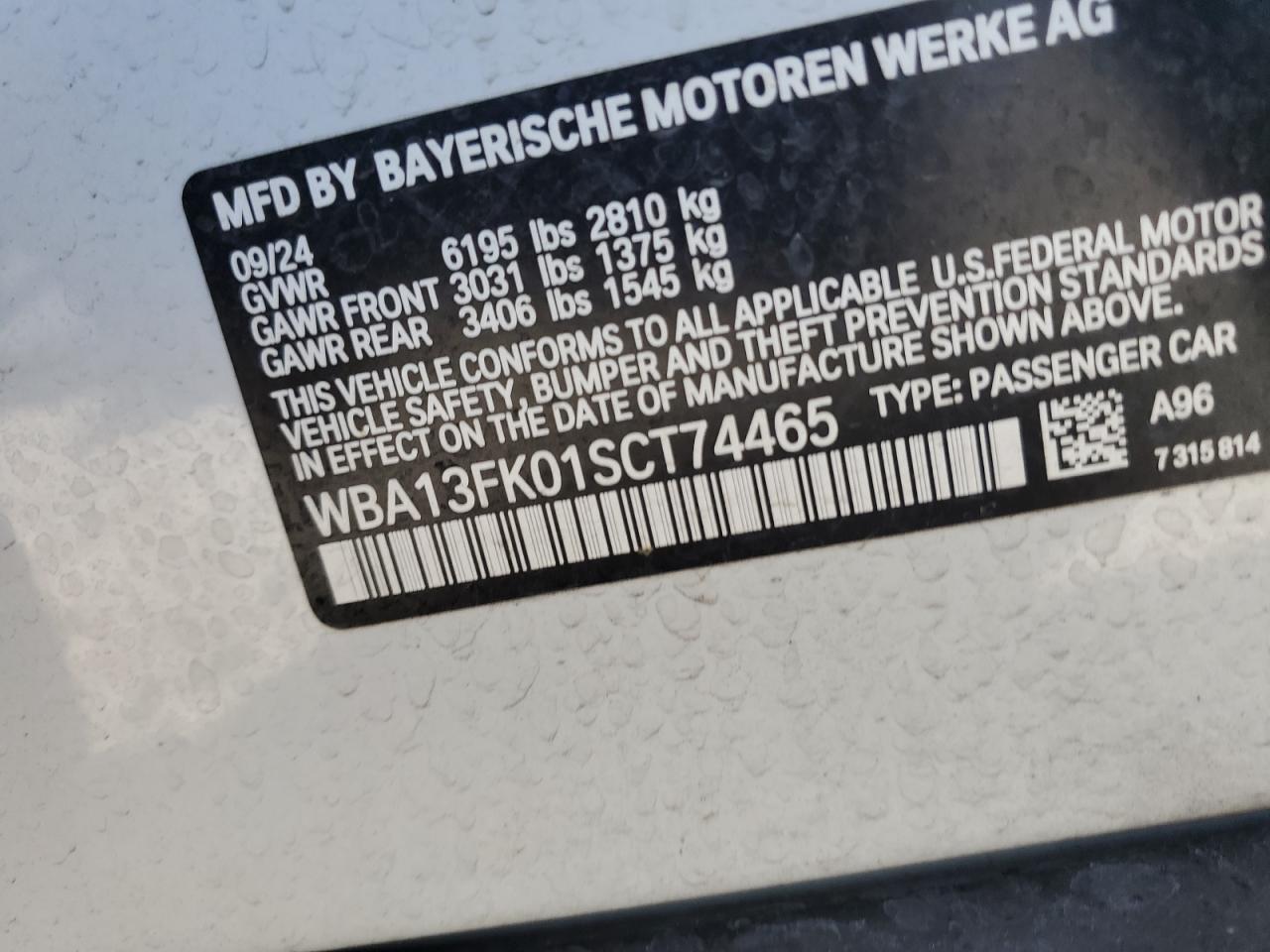 - ВИН: WBA13FK01SC******