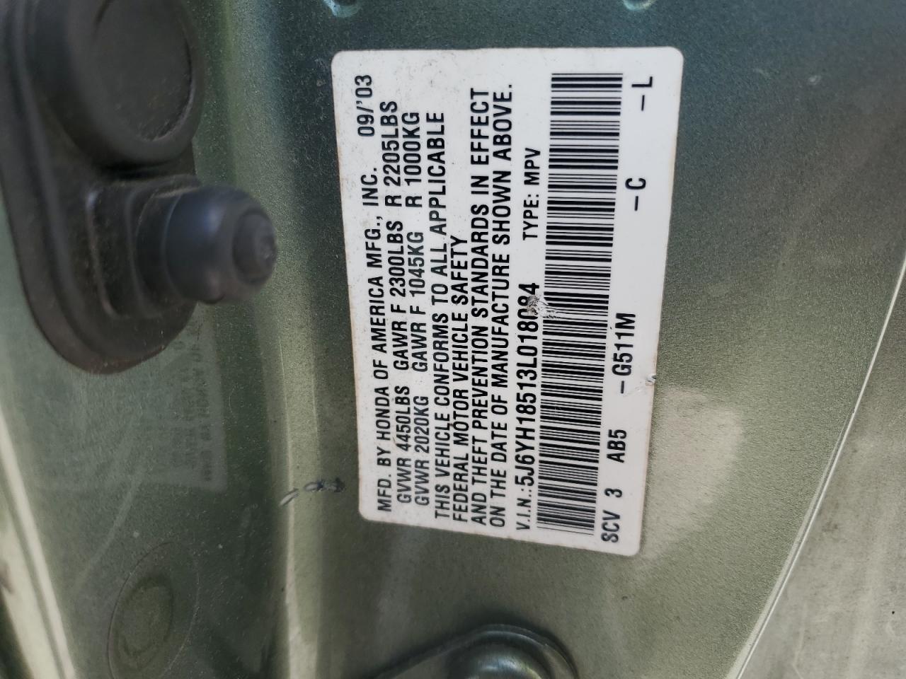 - ВИН: 5J6YH18513L******