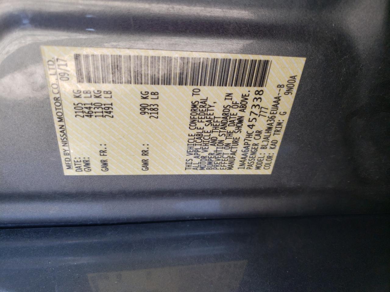 - ВИН: 1N4AA6AP7HC******