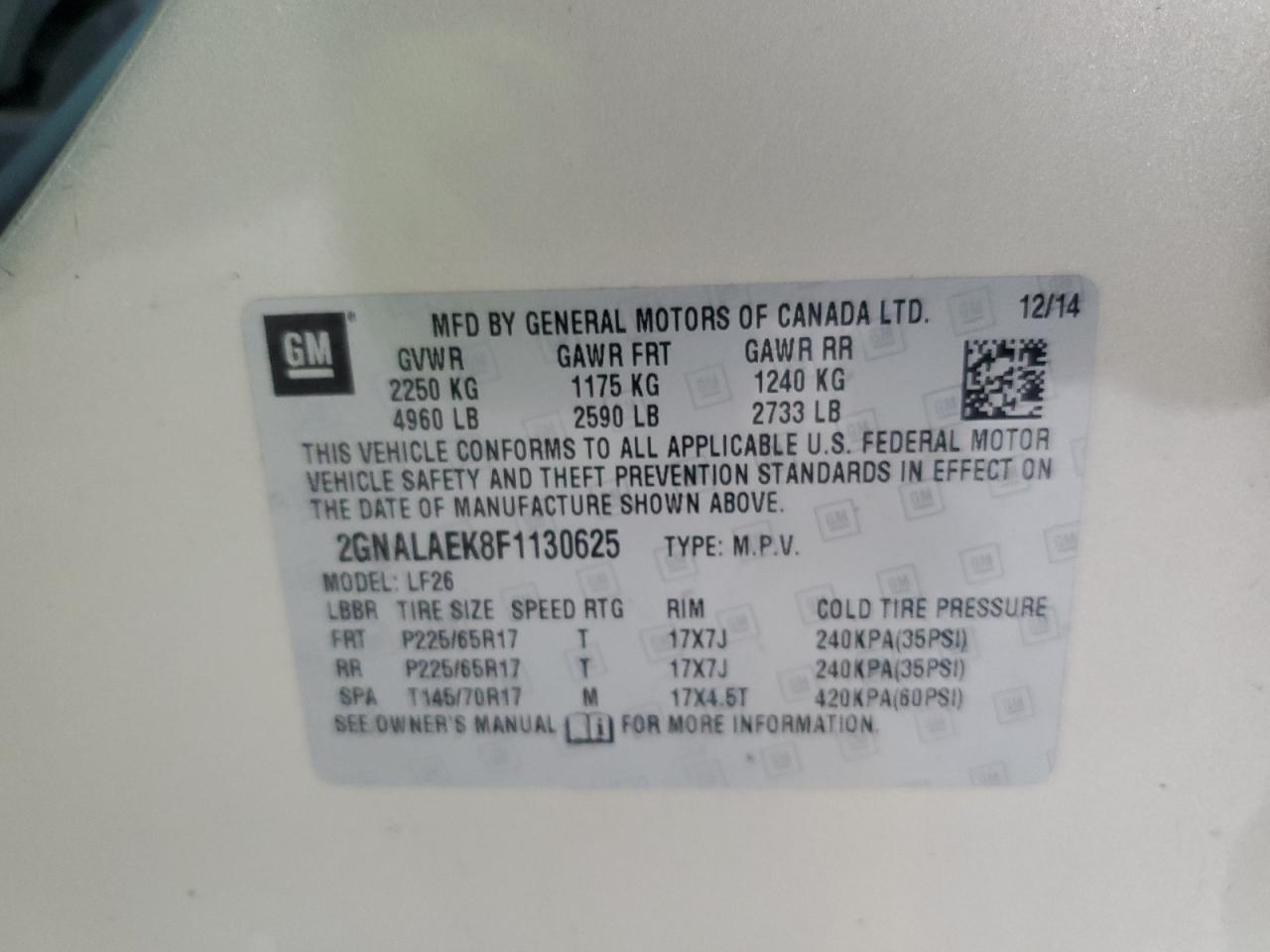 - ВИН: 2GNALAEK8F1******