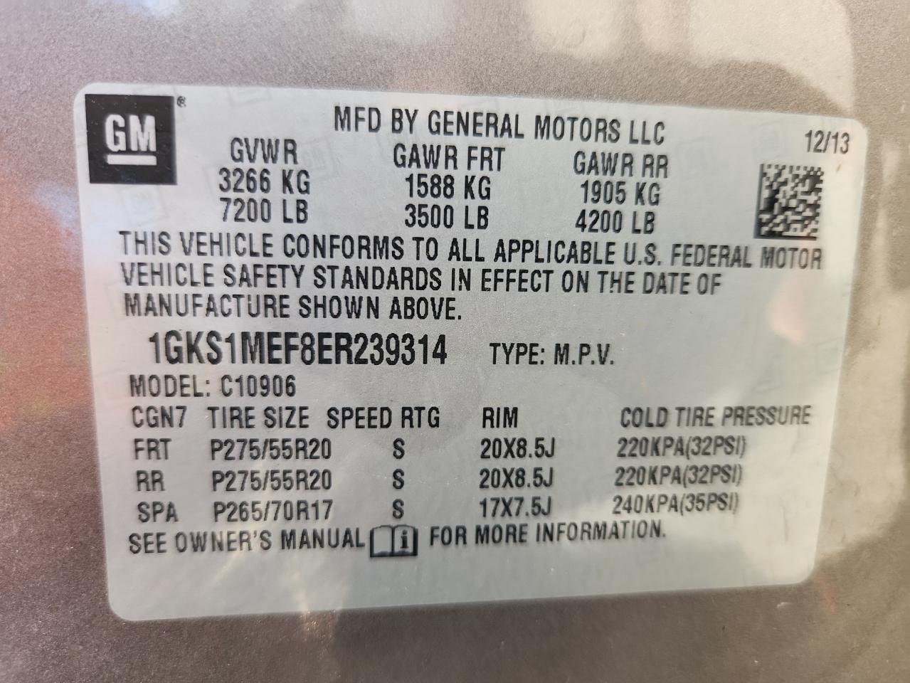 - ВИН: 1GKS1MEF8ER******
