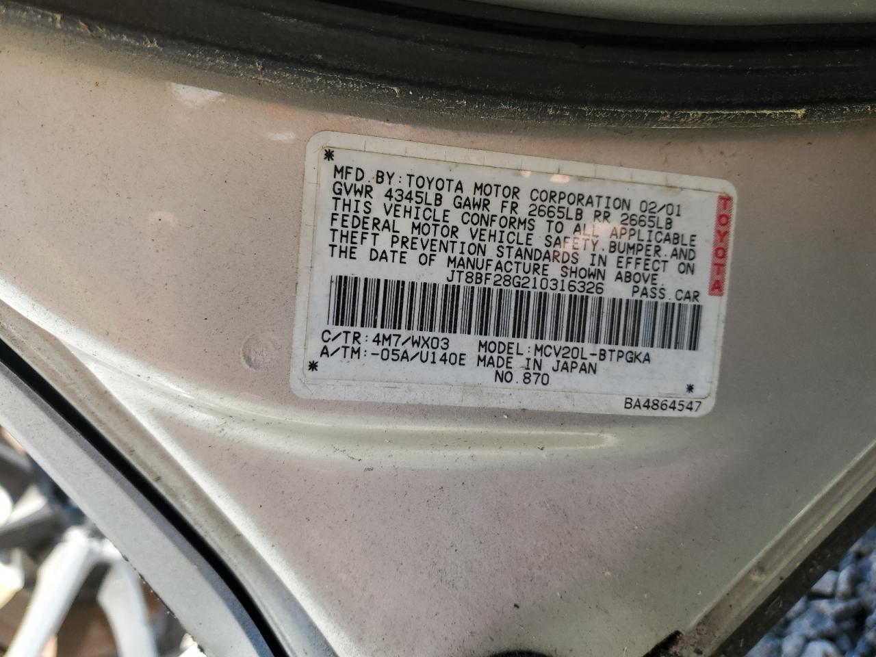 - ВИН: JT8BF28G210******