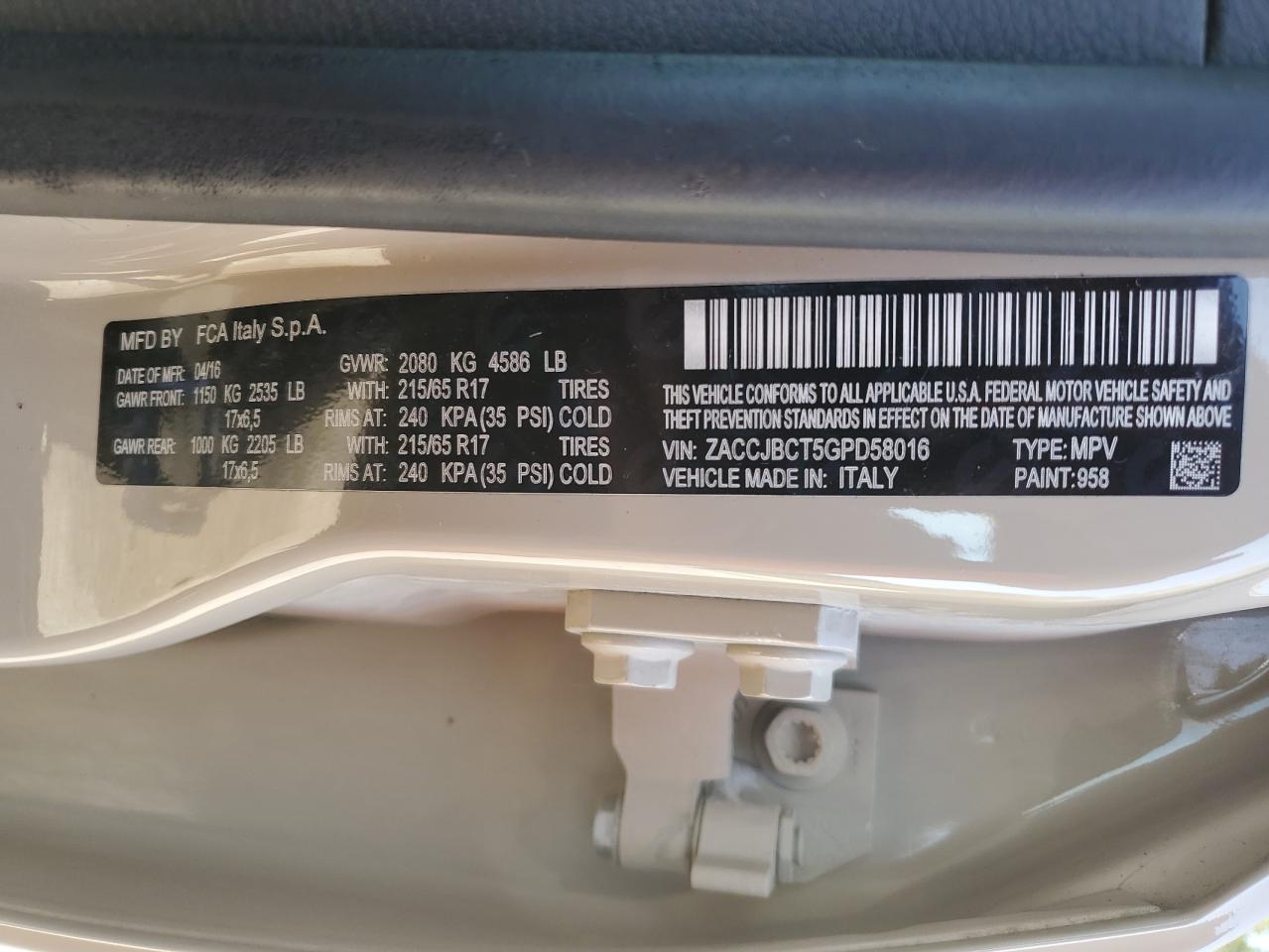 - ВИН: ZACCJBCT5GP******