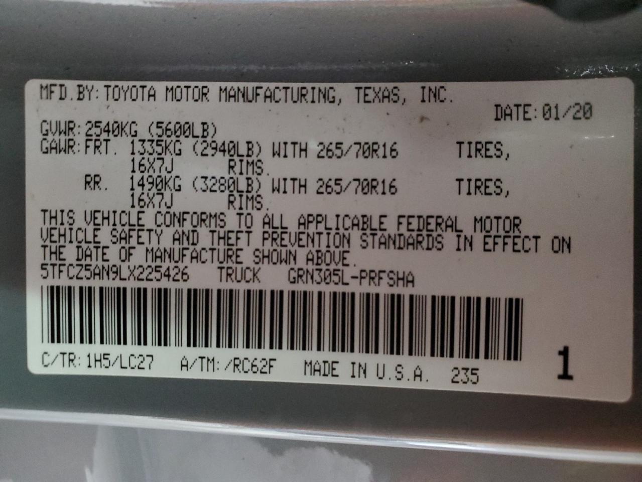 - ВИН: 5TFCZ5AN9LX******