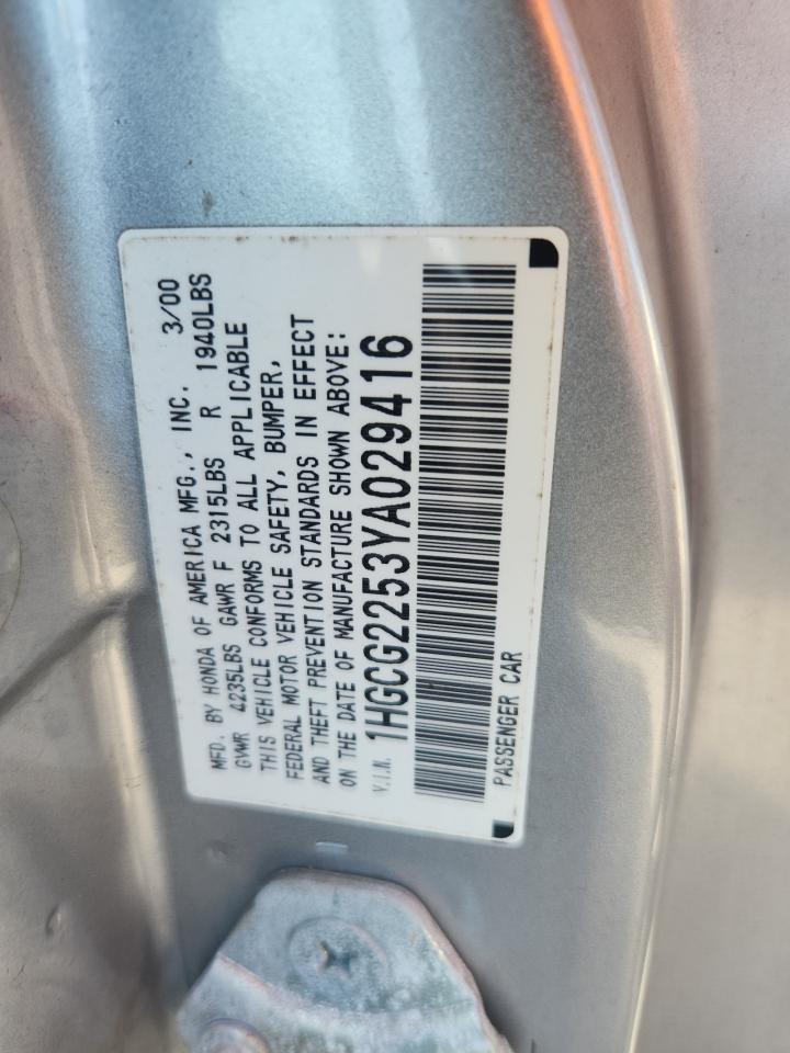 - ВИН: 1HGCG2253YA******