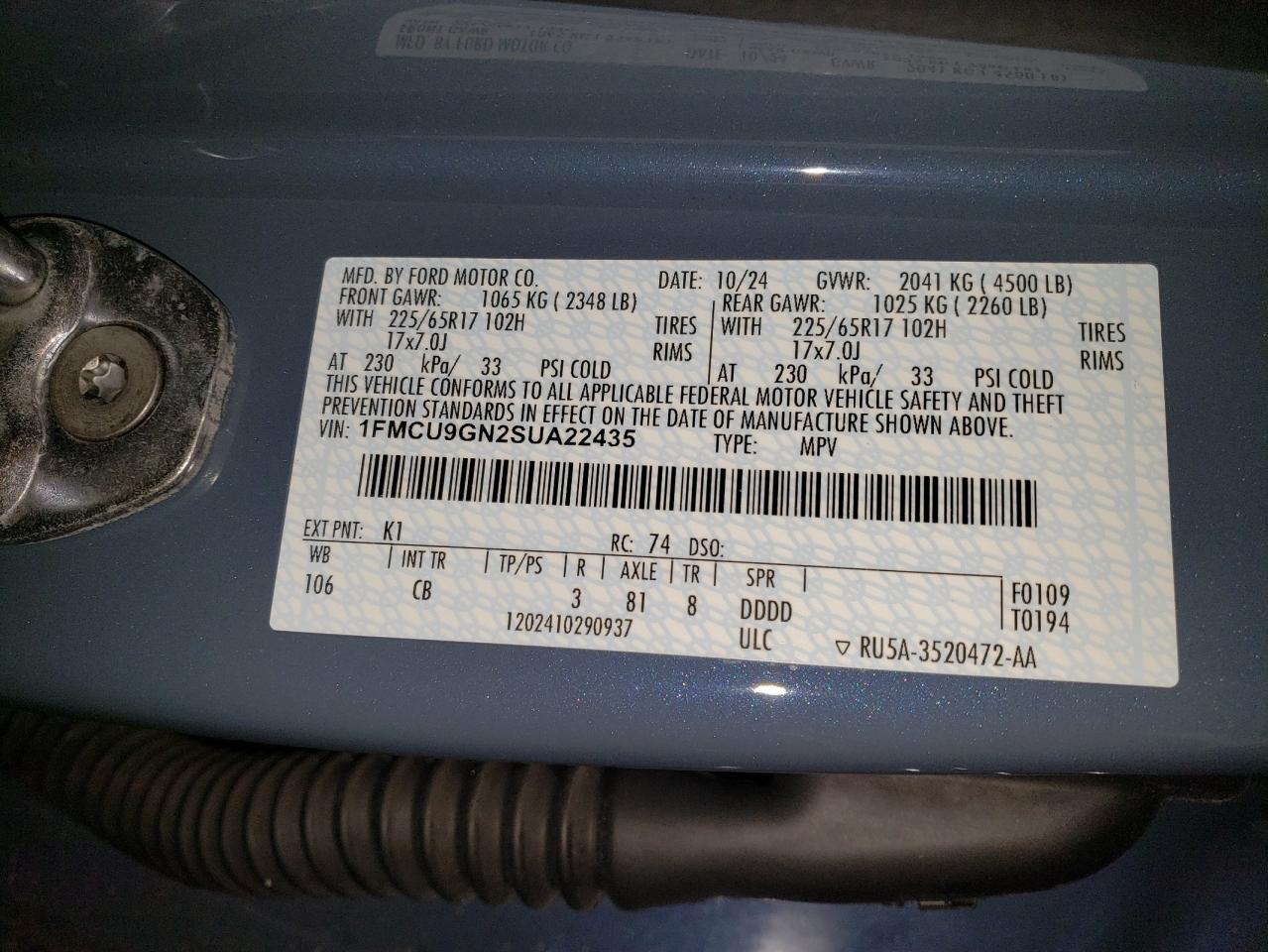 - ВИН: 1FMCU9GN2SU******