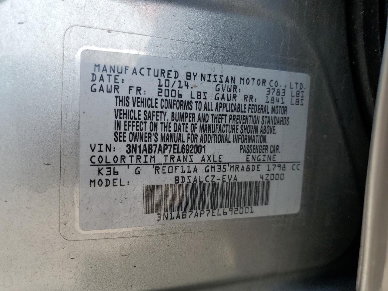 - ВИН: 3N1AB7AP7EL******