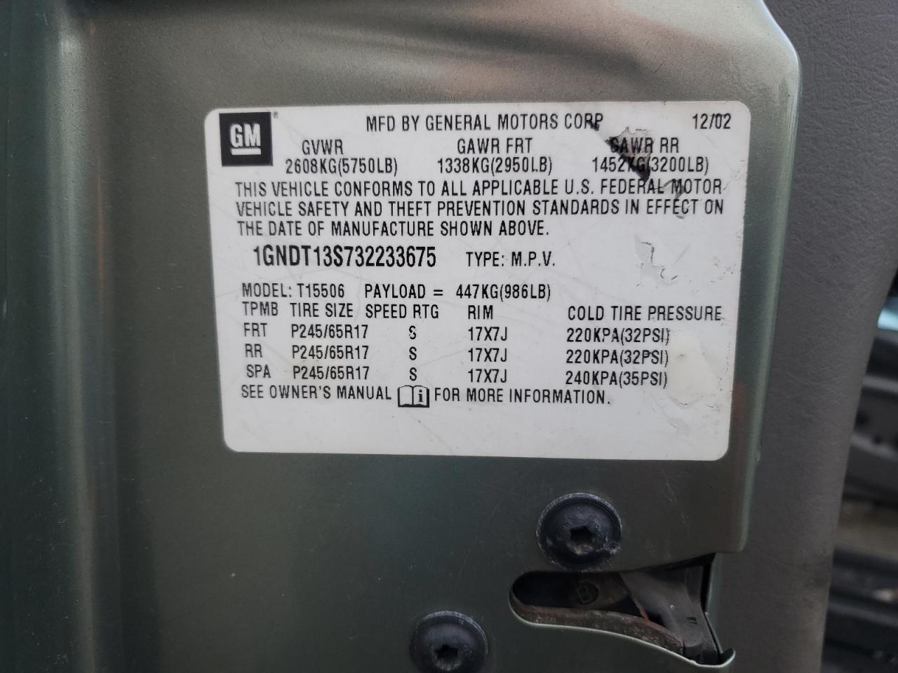 - ВИН: 1GNDT13S732******