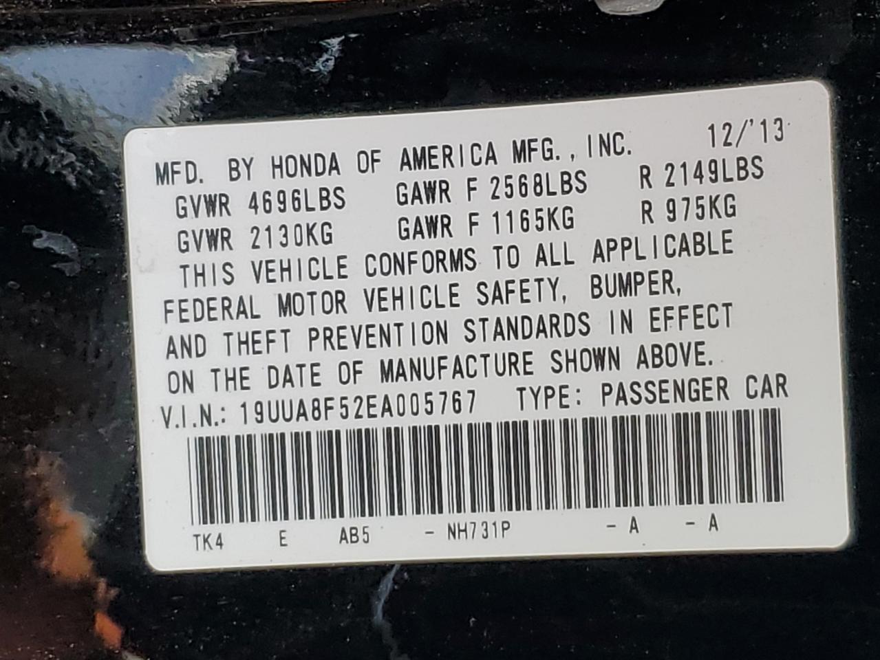 - ВИН: 19UUA8F52EA******