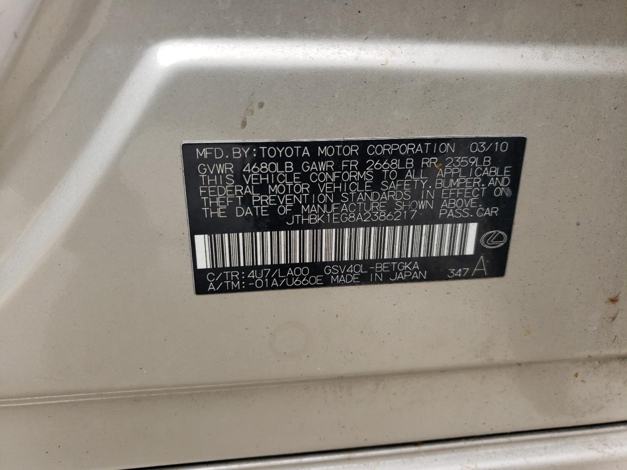 2010 LEXUS ES 350 из США