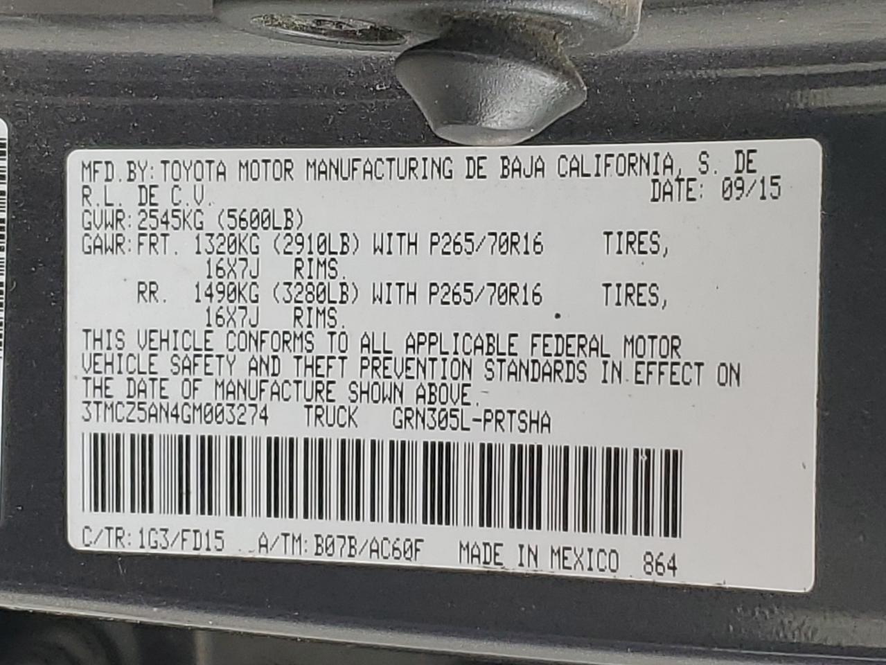 2016 TOYOTA TACOMA DOUBLE CAB