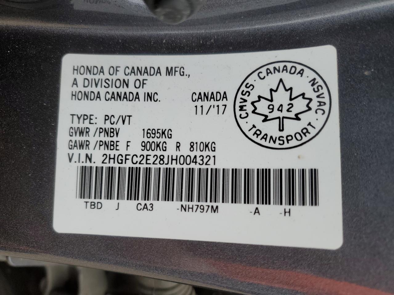 - ВИН: 2HGFC2E28JH******