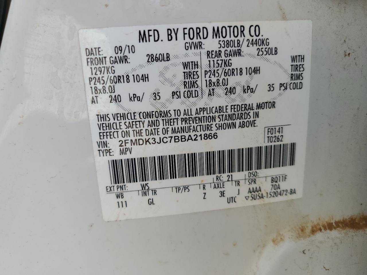 - ВИН: 2FMDK3JC7BB******
