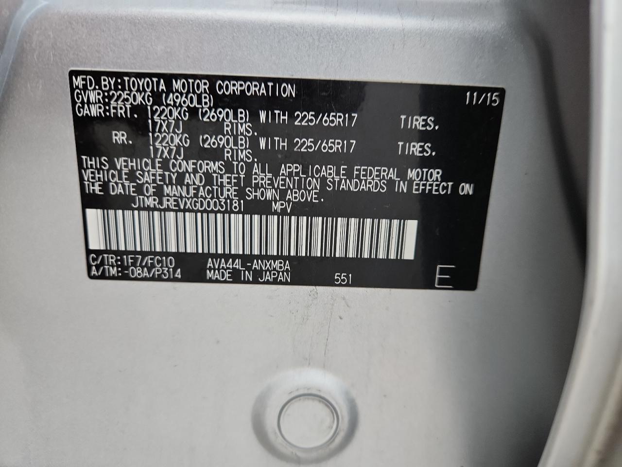 - ВИН: JTMRJREVXGD******