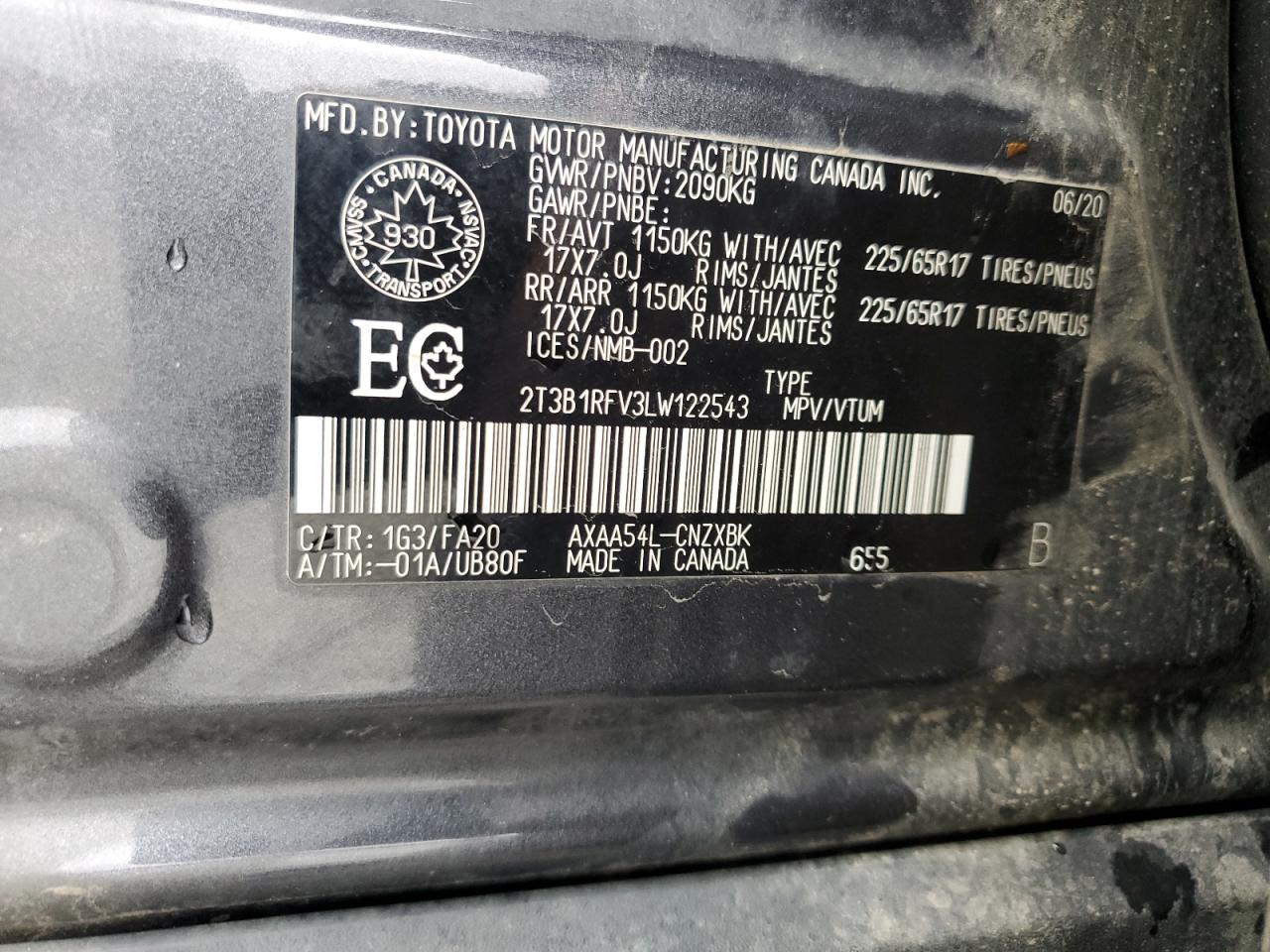 - ВИН: 2T3B1RFV3LW******