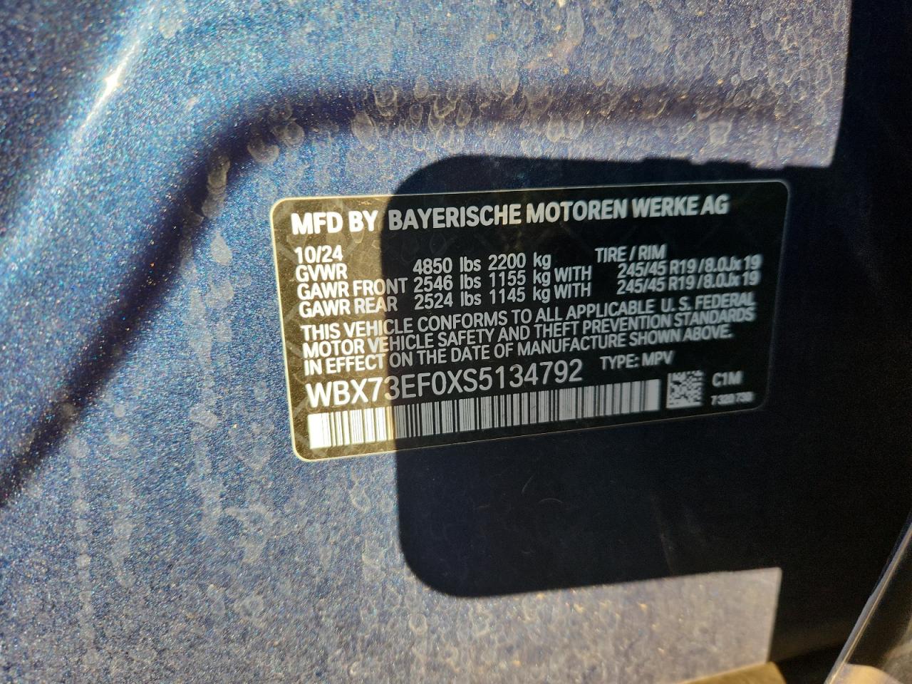 - ВИН: WBX73EF0XS5******