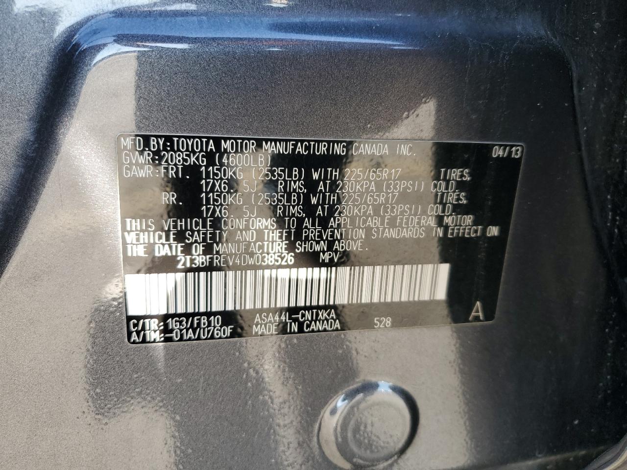 - ВИН: 2T3BFREV4DW******
