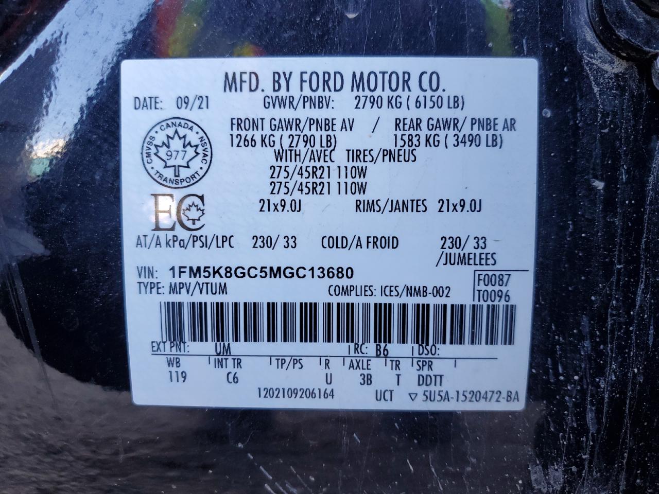 - ВИН: 1FM5K8GC5MG******
