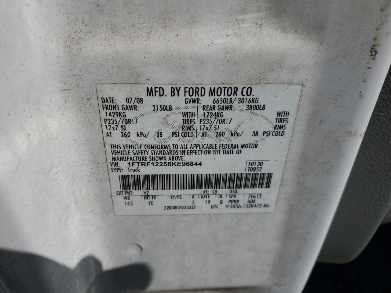 - ВИН: 1FTRF12258K******