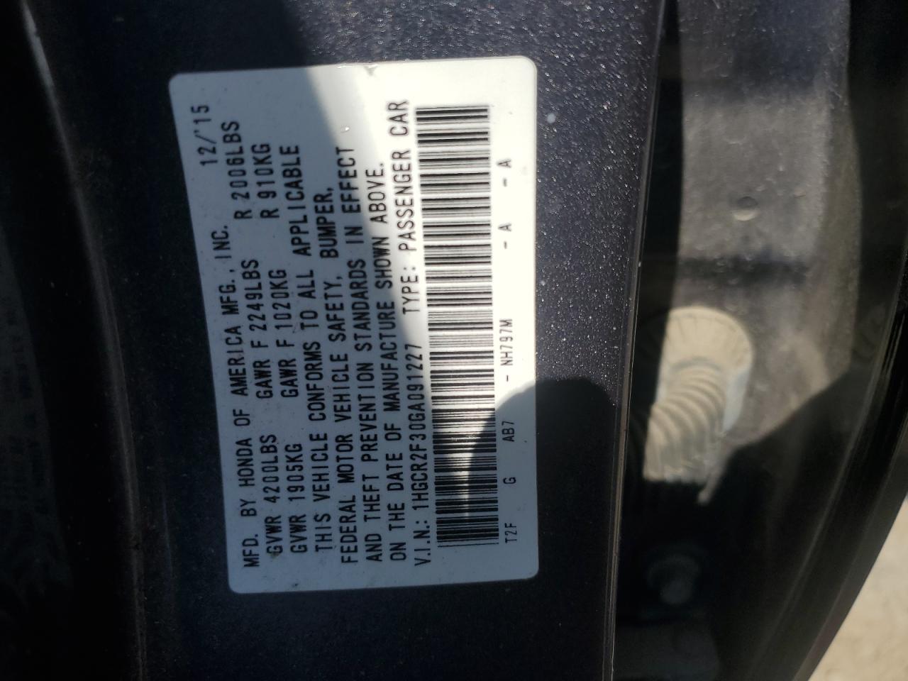 - ВИН: 1HGCR2F30GA******