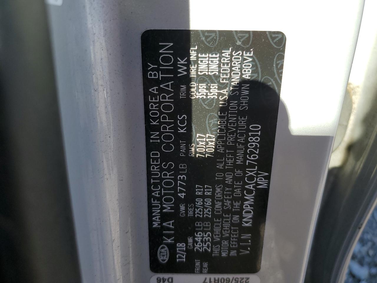- ВИН: KNDPMCACXL7******