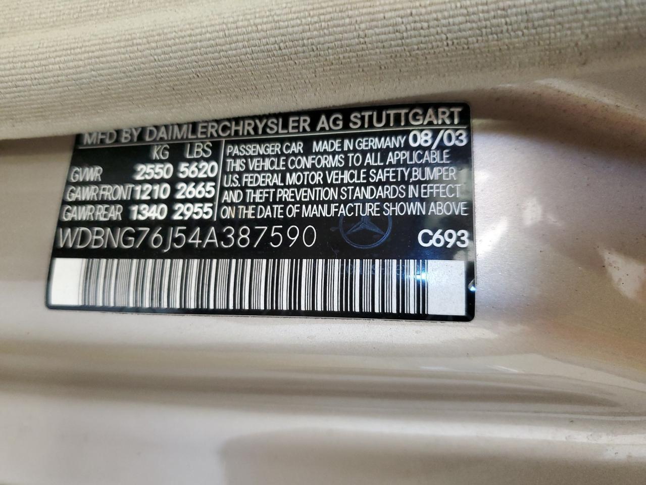 2004 MERCEDES-BENZ S 600 из США