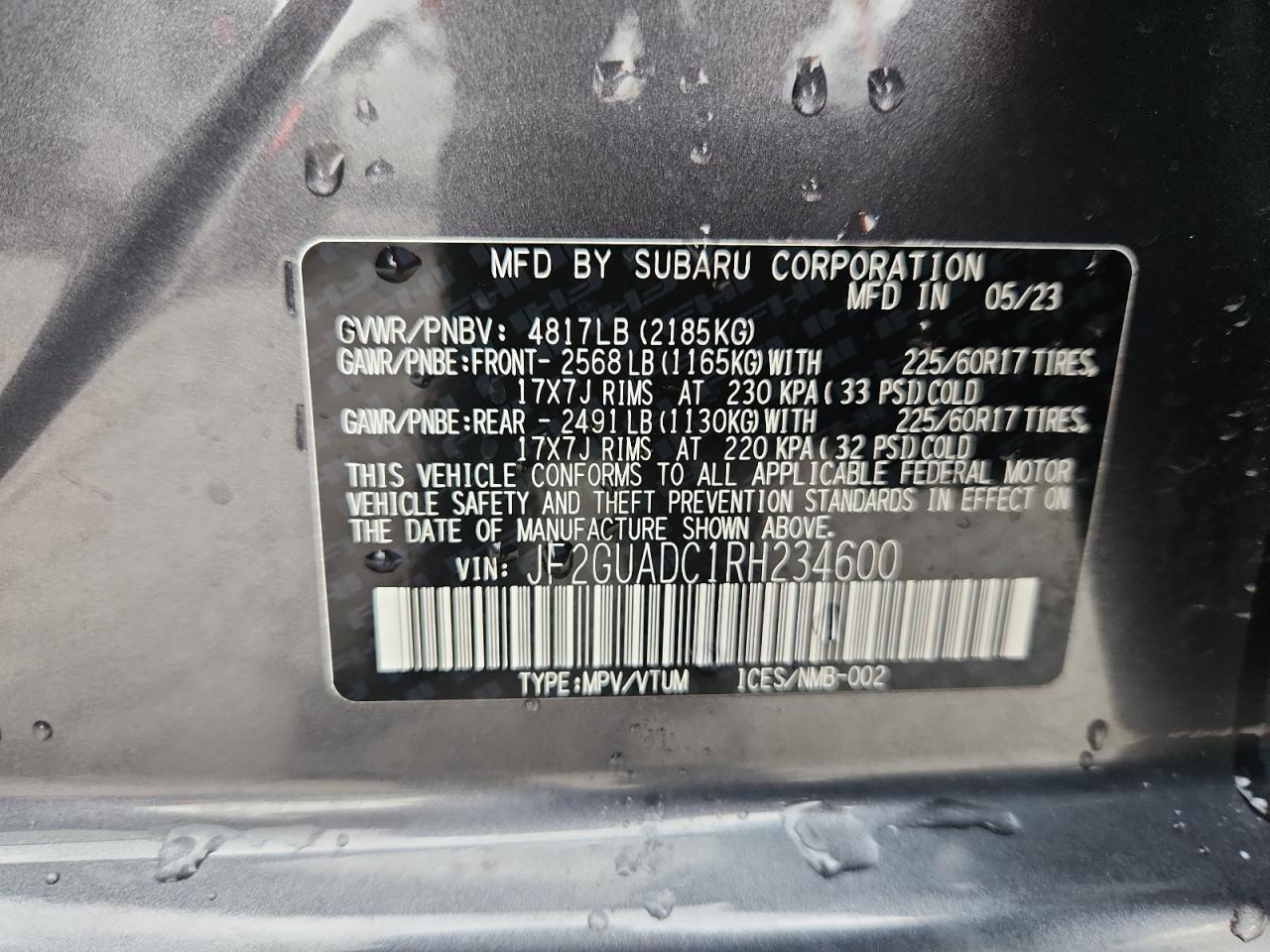 - ВИН: JF2GUADC1RH******